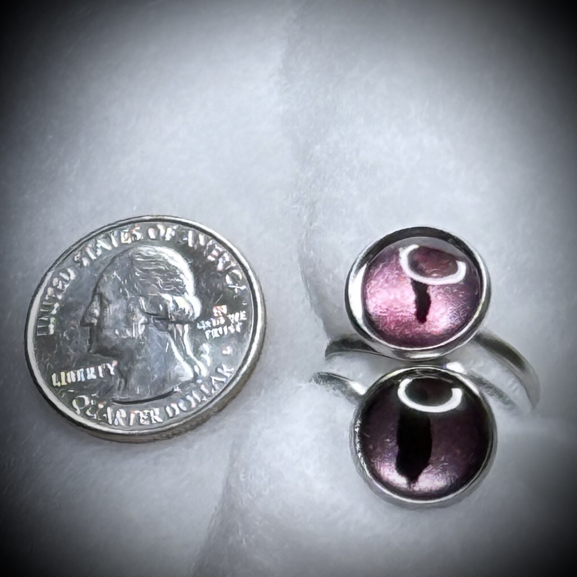 A symphony of color and magic, this adjustable ring features a pair of hand-painted dragon eyes, their soft mauve and soft lavender depths swirling with otherworldly energy. The intricate details and vibrant colors make this ring a captivating statement piece, perfect for those who embrace the mystical. Rings Hypoallergenic