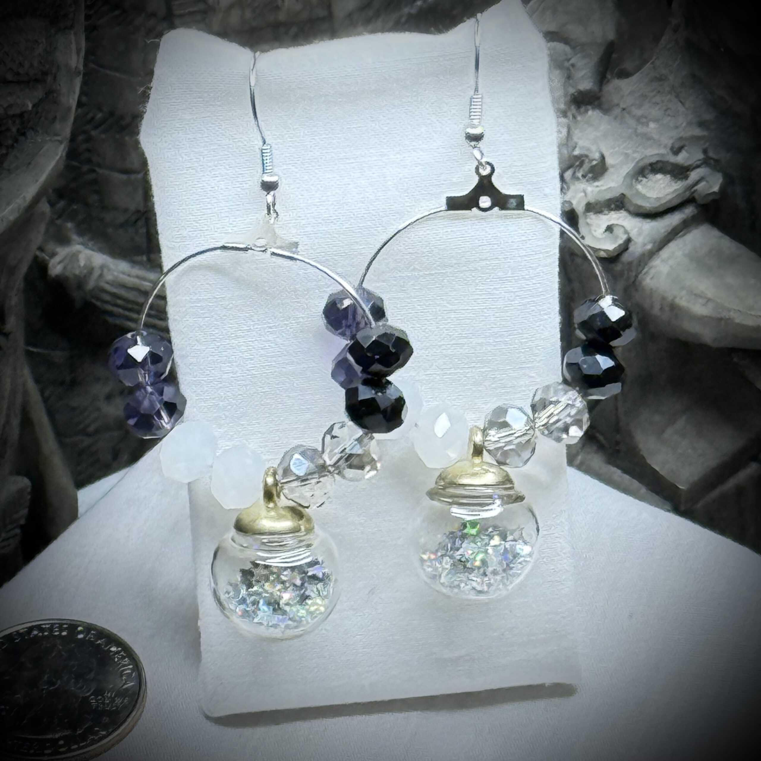 The earrings have Surgical Stainless Steel French hooks and clear silicon earring backs.