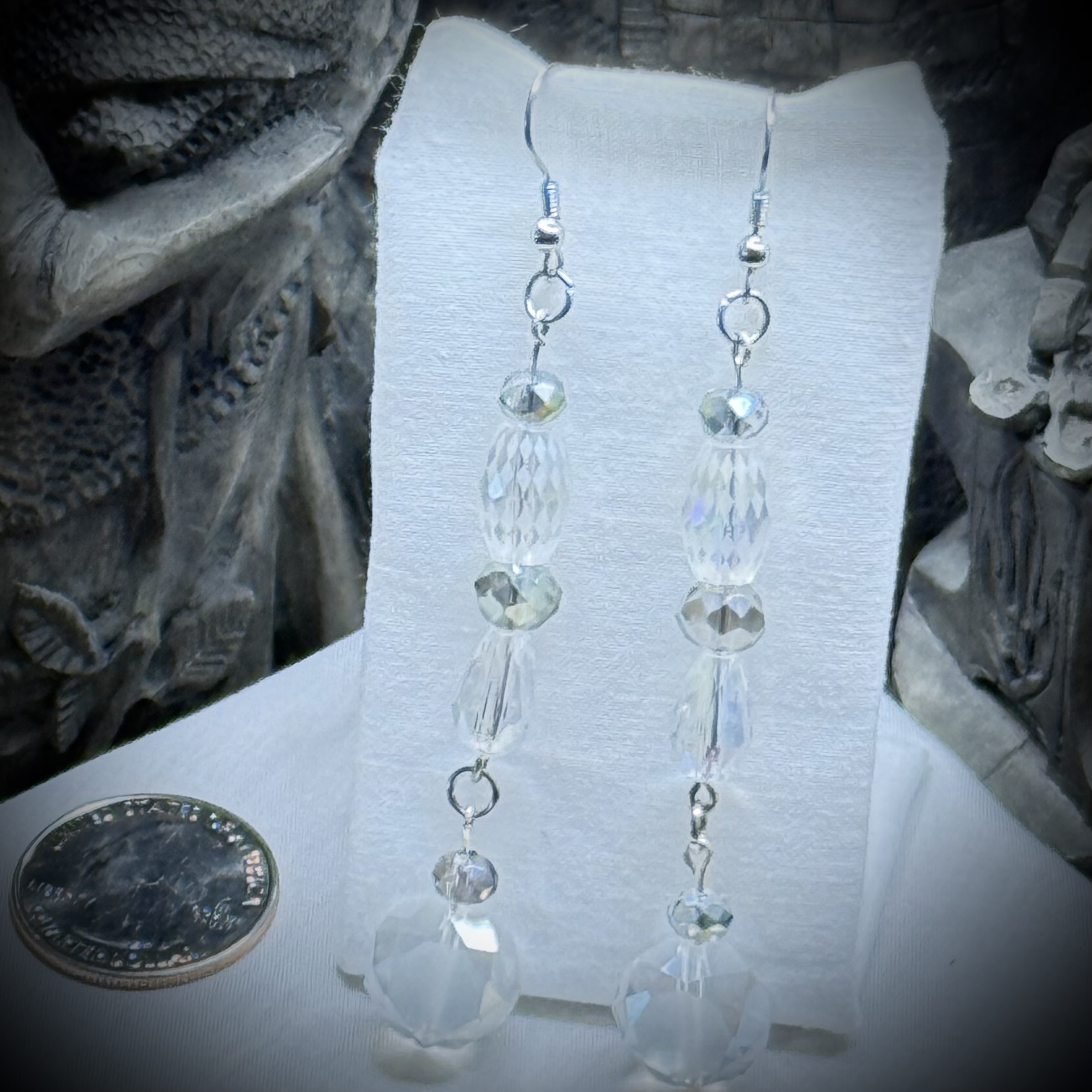 The 'Celestial Queen' earrings are a testament to ethereal beauty. The intricate facets of the clear and silver beads capture and reflect light with breathtaking brilliance, evoking the sparkle of distant stars. These earrings are designed to elevate your look to celestial heights, ensuring you command attention with every move. The earrings have Surgical Stainless Steel French hooks and clear silicon earring backs.