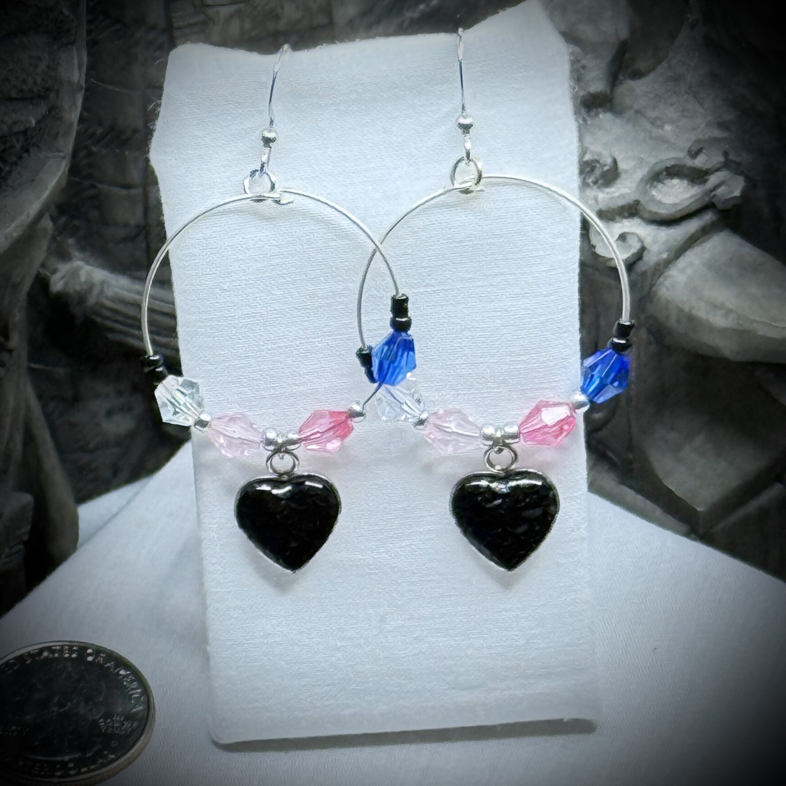 The earrings have Surgical Stainless Steel French hooks and clear silicon earring backs.