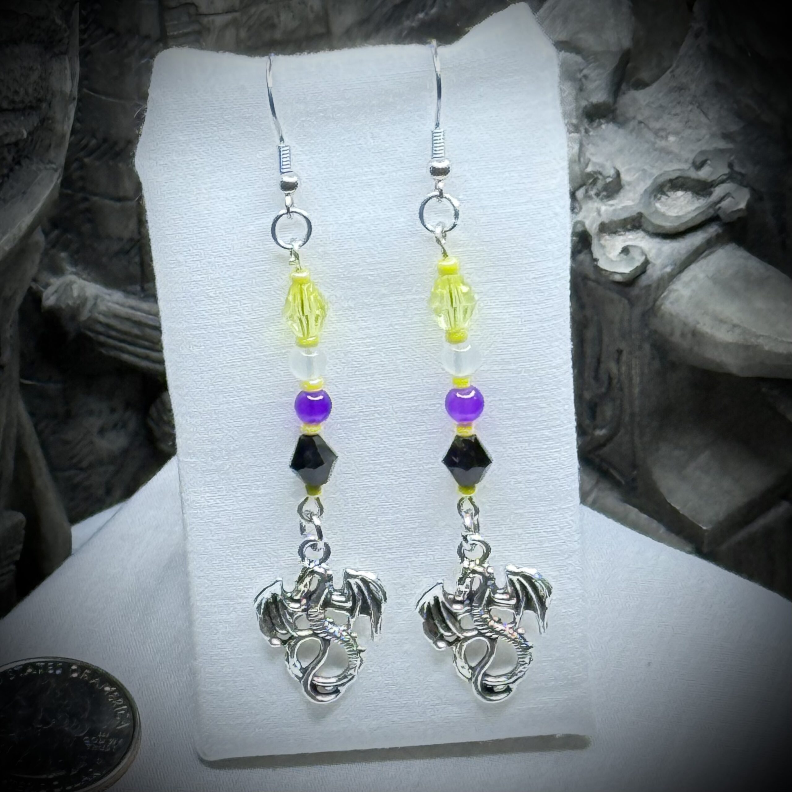 Declare your non-binary pride with these unique and expressive earrings. The combination of sleek black, vibrant yellow, calming white, and regal purple glass beads creates a stunning visual representation of the non-binary flag. The fun charms add a touch of personality, making these earrings the perfect accessory for any pride event or everyday celebration of your identity.