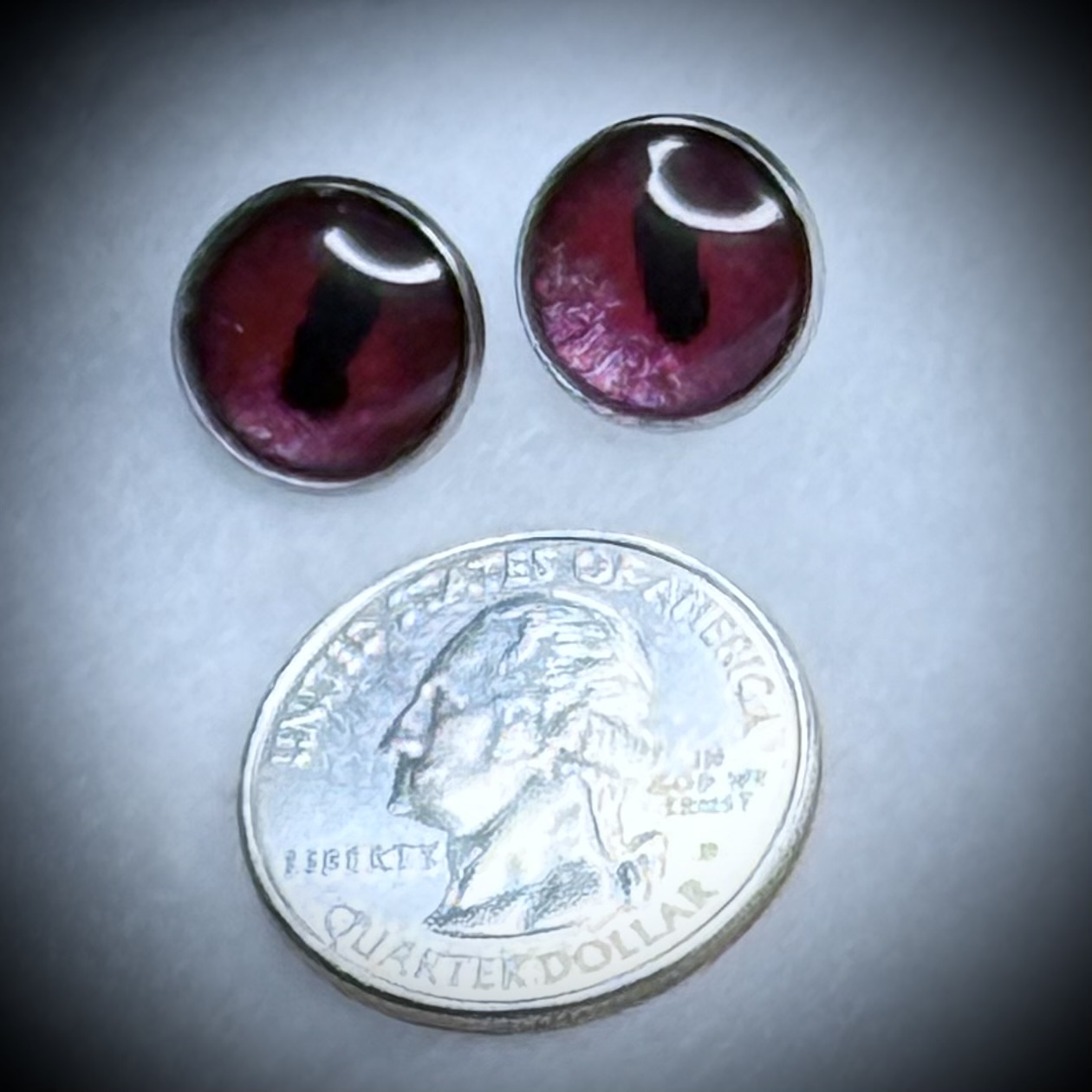 Illuminate your look with the subtle magic of these hand-painted magenta dragon eye stud earrings. Each pair is uniquely crafted, showcasing the mesmerizing gaze of a legendary being. Perfect for adding a touch of enchantment to any style.The earrings have Surgical Stainless Steel posts and backings.