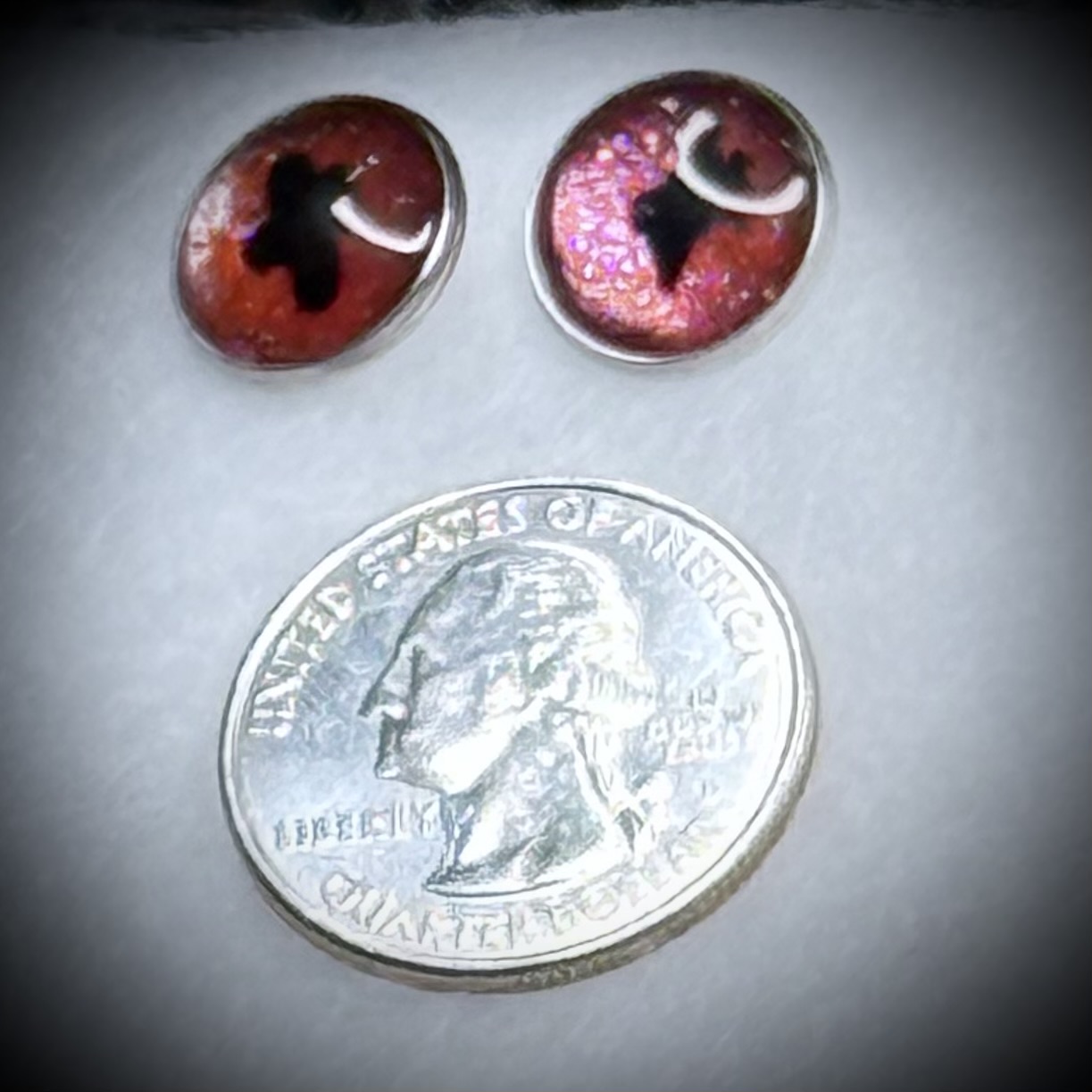 Illuminate your look with the subtle magic of these hand-painted deep orange dragon eye stud earrings. Each pair is uniquely crafted, showcasing the mesmerizing gaze of a legendary being. Perfect for adding a touch of enchantment to any style. The earrings have Surgical Stainless Steel posts and backings.