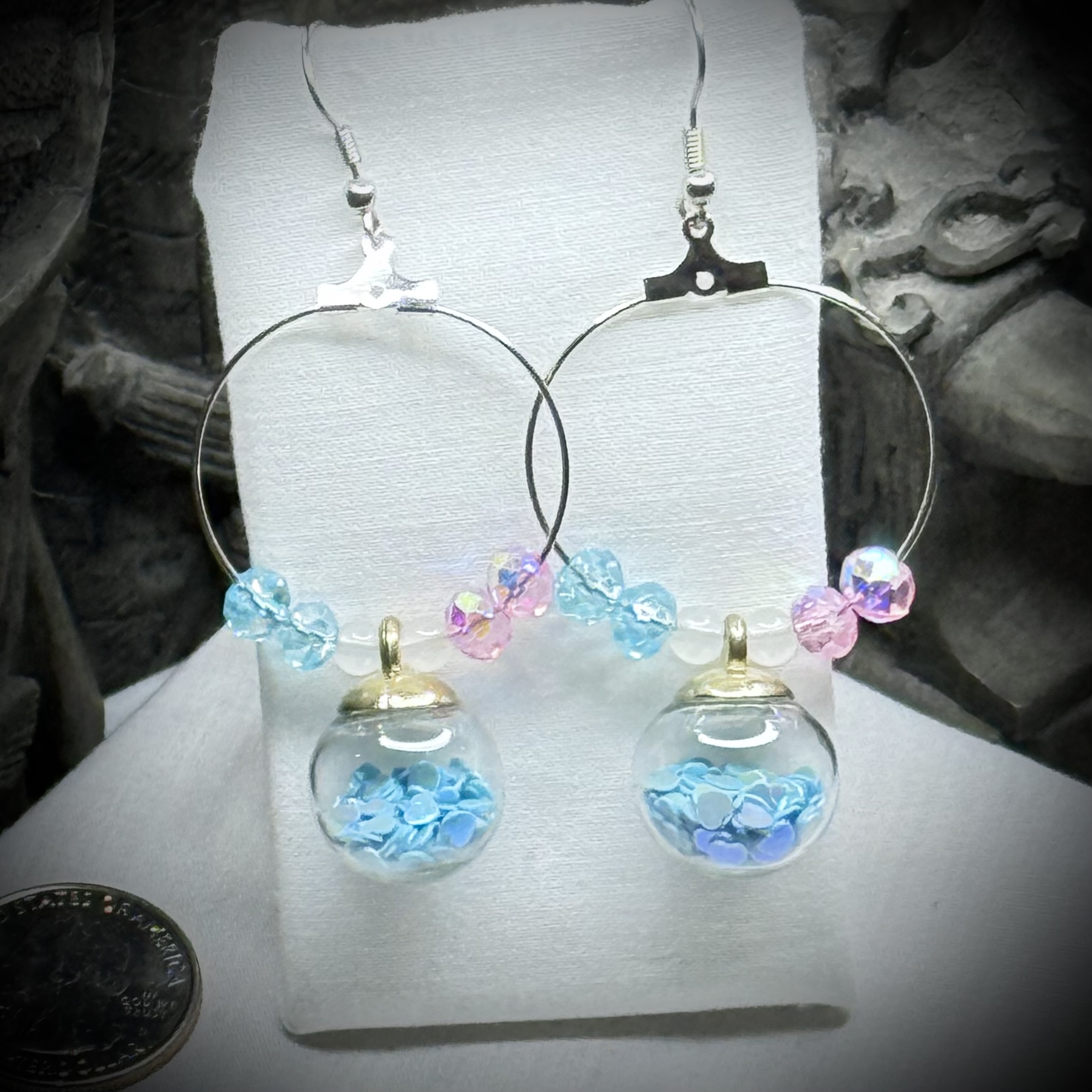 The earrings have Surgical Stainless Steel French hooks and clear silicon earring backs.
