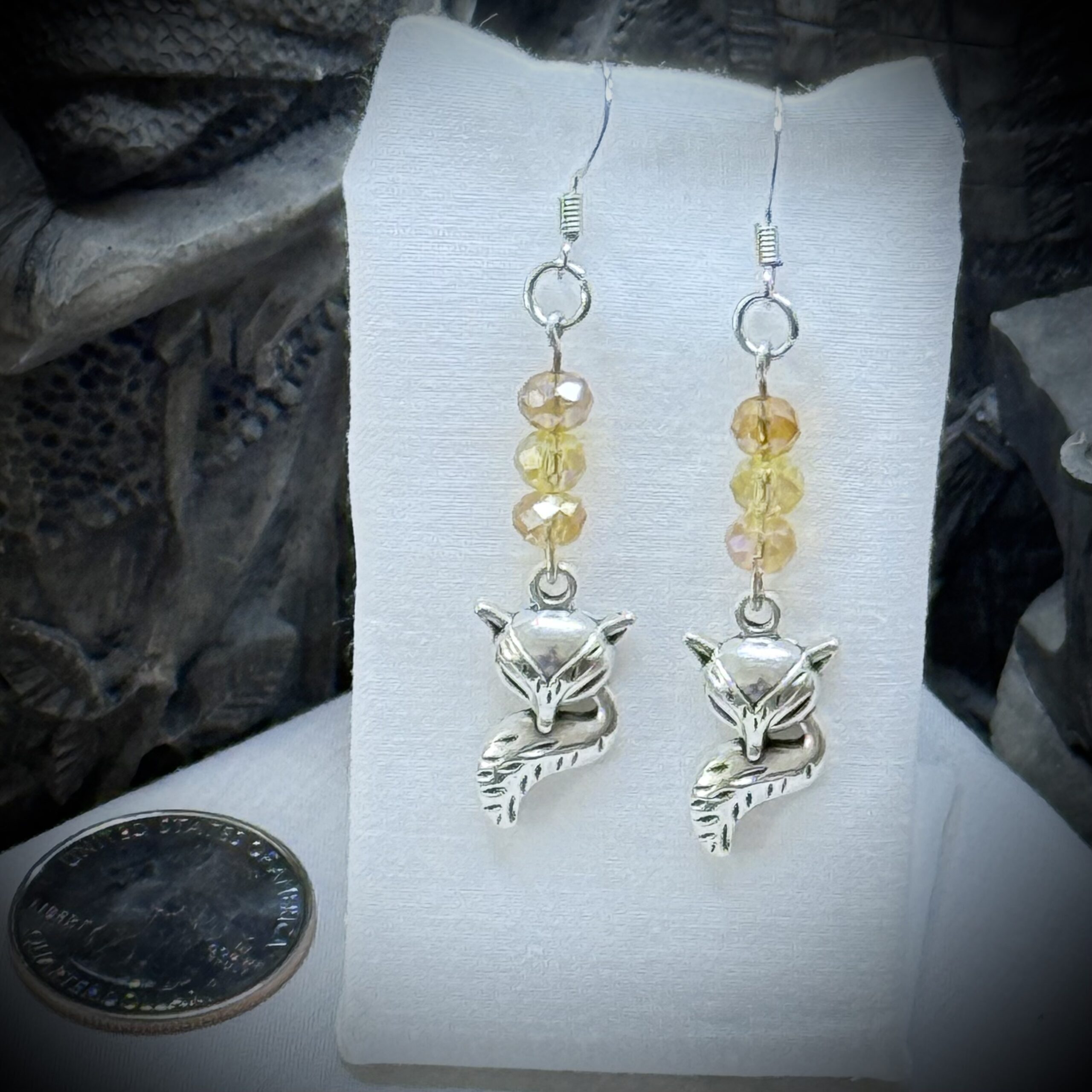 Drift into a world of golden dreams with Foxy, the Faerie Friend. Golden Slumber captures the serene magic of twilight, where foxy dreams mingle with faerie whispers with colors of golds and yellows in glass crystal beads. Let this enchanting companion guide you to a peaceful slumber.