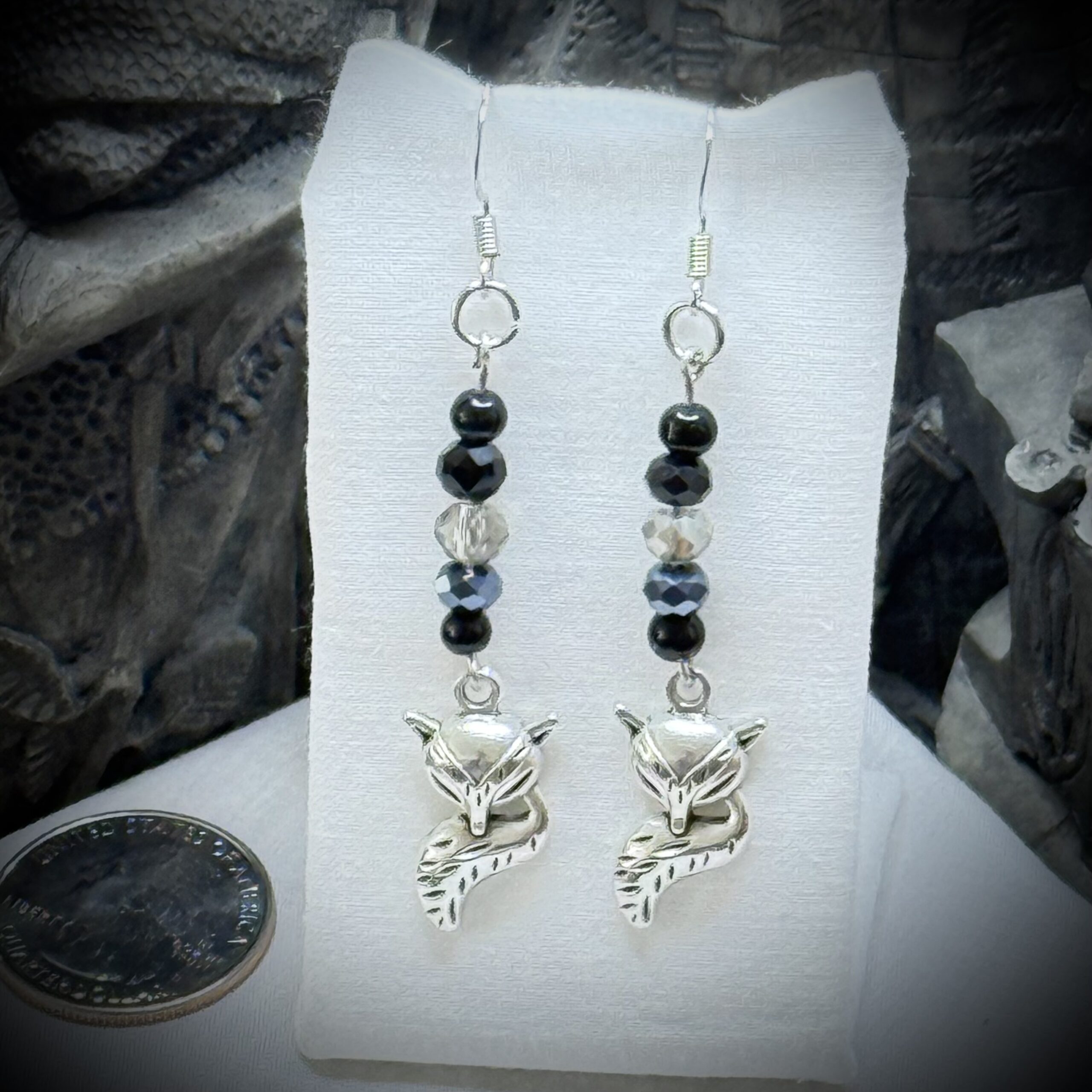 Join Foxy on a Nighttime Romp! This adorable faerie friend captures the playful spirit of a fox frolicking under the moonlit sky. With shimmering glass crystal beads in blacks, grey and silvers, Foxy is ready for magical adventures in the enchanted forest. A perfect companion for dreamers of all ages.
