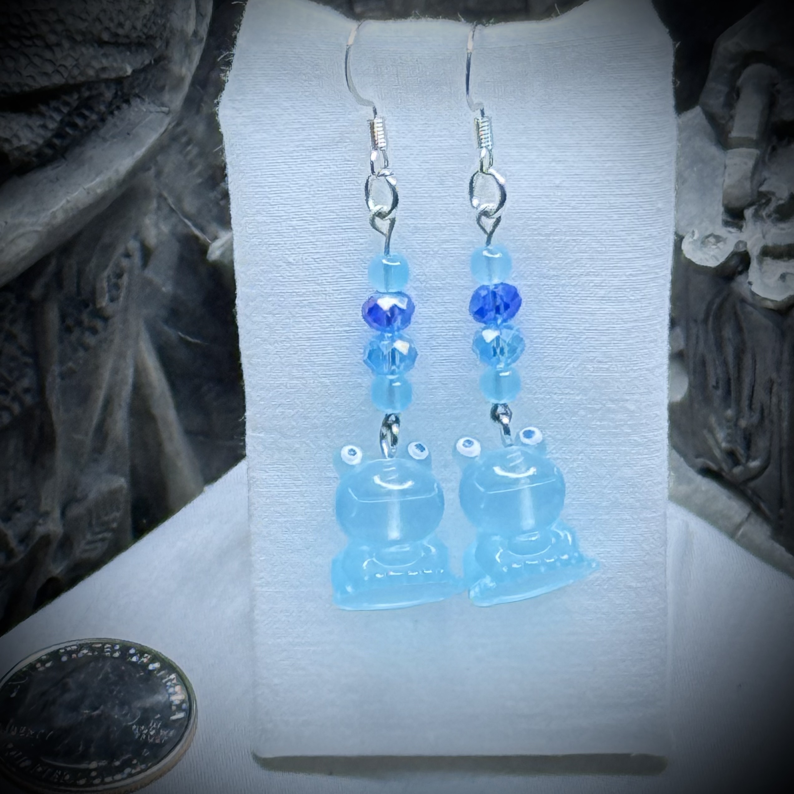 Step into a whimsical world with our Blue Frog earrings! These adorable earrings feature a charming design that will capture the hearts of frog enthusiasts. Crafted from high-quality glass beads and resin frogs, they are not only stylish but also durable. Surprise the frog lover in your life with these unique earrings that glow in the dark – a perfect gift to add a touch of magic to any outfit!
