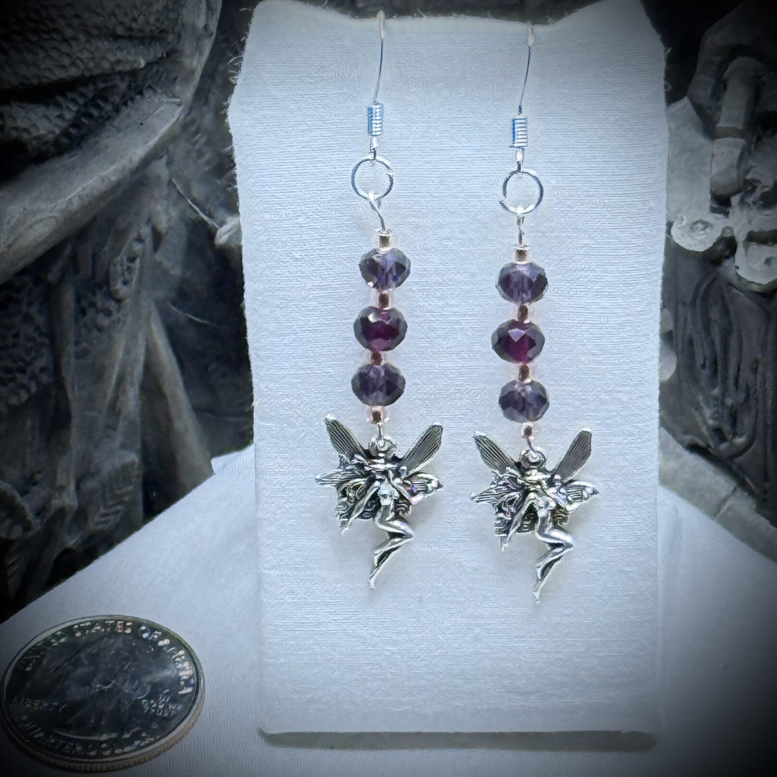 Step into a realm of enchantment with our Faeries – Purple Majesty earrings. Let the magical faeries dance with delight as the purple glass crystal beads capture the essence of the majestic. Embrace your inner whimsical spirit and adorn yourself with these captivating earrings that are sure to make you feel like a mystical beauty!