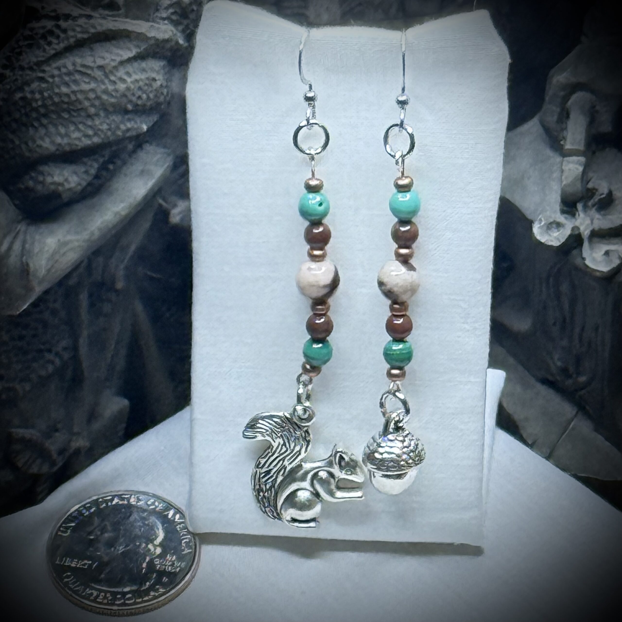 Indulge in the enchanting world of genuine gemstones with our Faerie Friends – Squirrel and Acorn earrings. Adorned with natural Malachite, Jasper, and Brown Rhodonite, these earrings boast a unique design inspired by adorable faerie themes. Embrace the whimsical charm of these gemstone earrings and add a touch of magic to your everyday style!