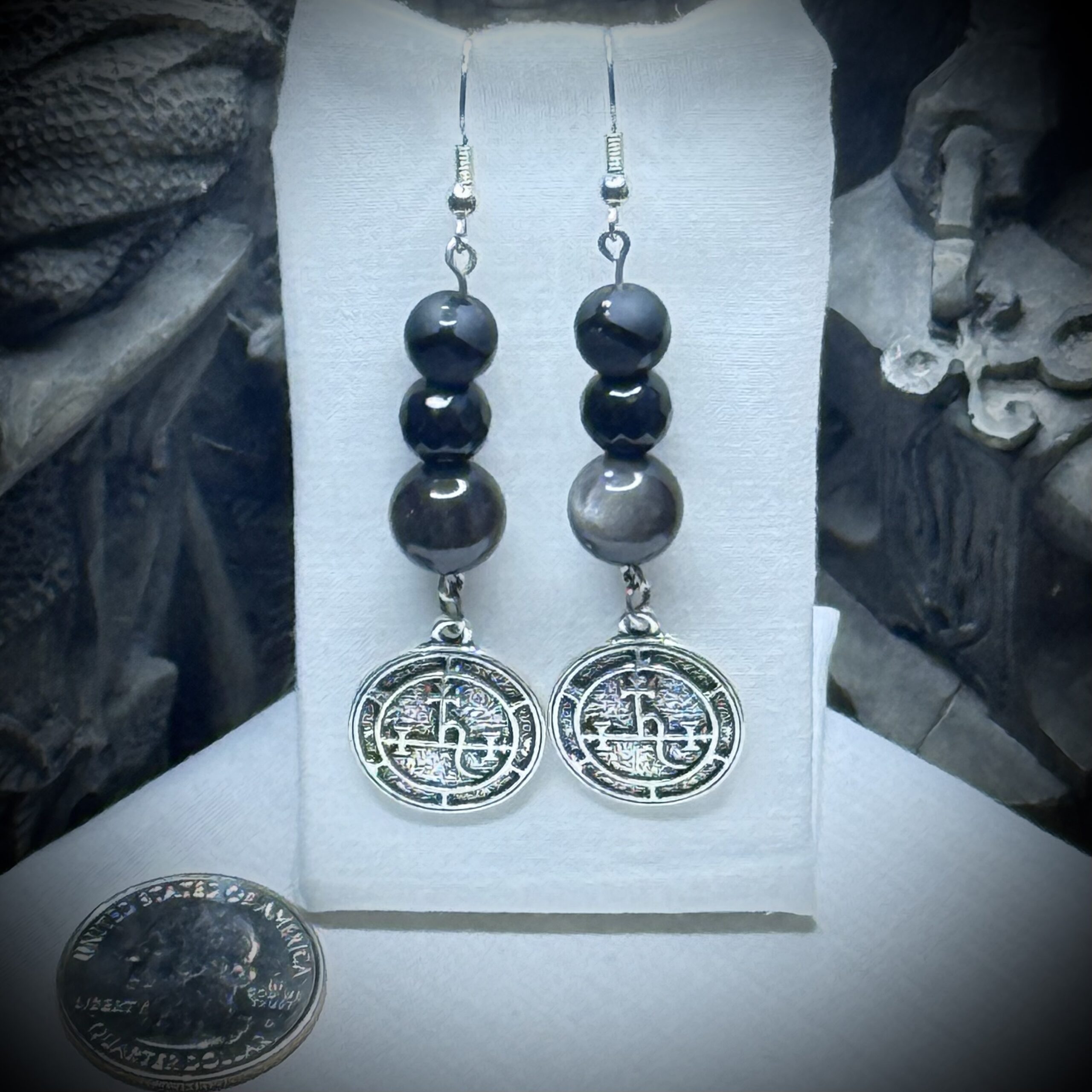 Genuine Gemstones – Earrings – Lilith Sigil – Black Moonstone, Black Tourmaline & Black obsidian