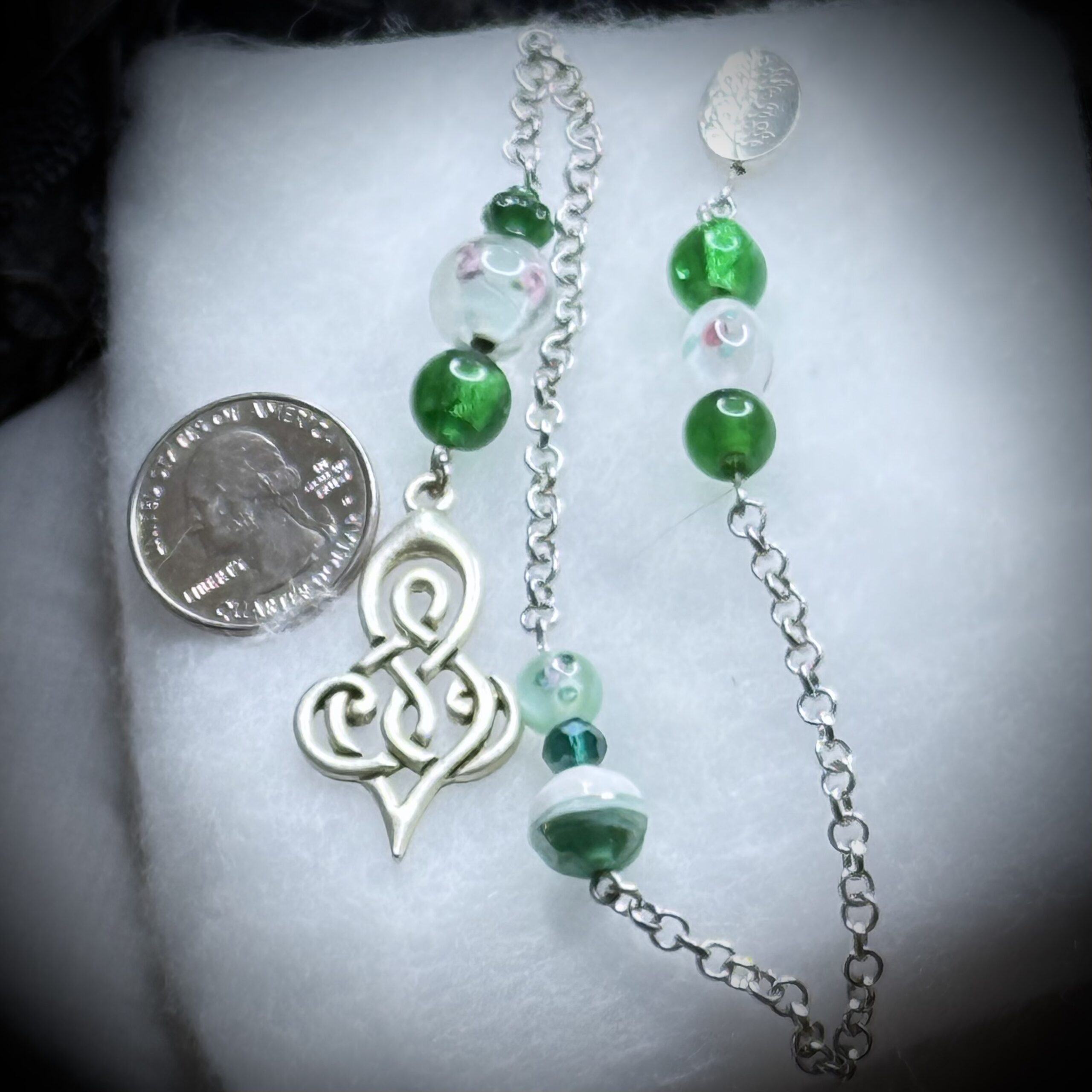 This enchanting pendulum, meticulously crafted from lively green glass beads, with a Celtic goddess, is a tool for divination and spiritual exploration. Its smooth, polished surface reflects light beautifully, making it both visually appealing and easy to use. Whether you're seeking answers to life's questions, connecting with your intuition, or exploring the subtle energies around you, this hand-crafted pendulum is a valuable tool for your journey of self-discovery.